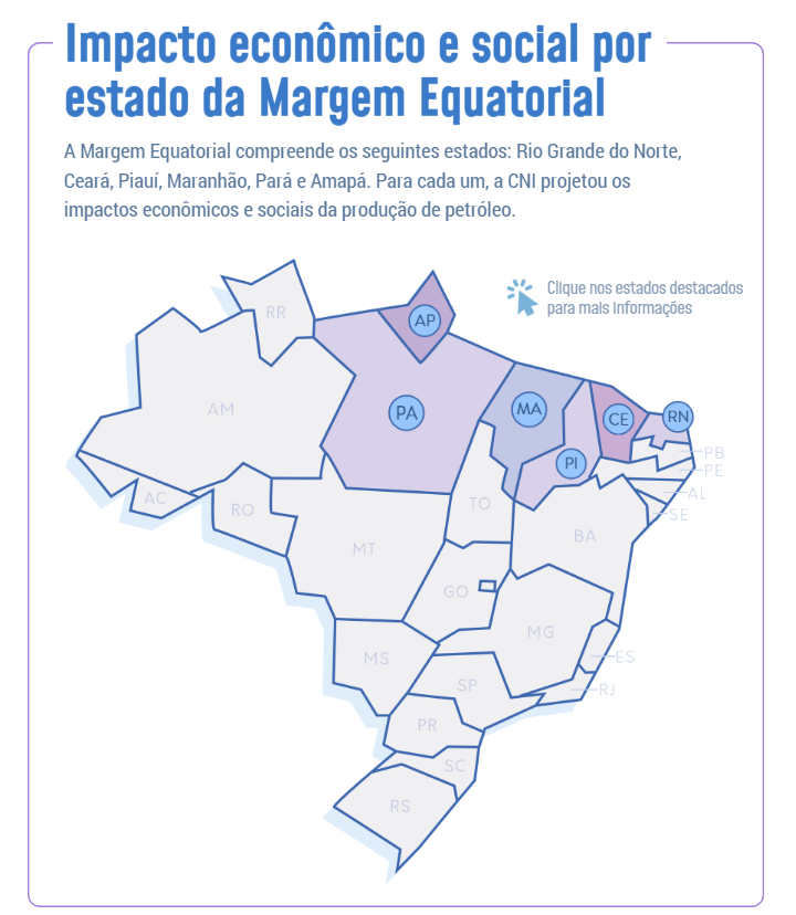 A CNI, por meio do Observatório Nacional da Indústria, elaborou estudo sobre os possíveis impactos econômicos e sociais da produção de petróleo na Margem Equatorial brasileira, segundo o qual a atividade tem o potencial de criar 326.049 novos empregos formais.