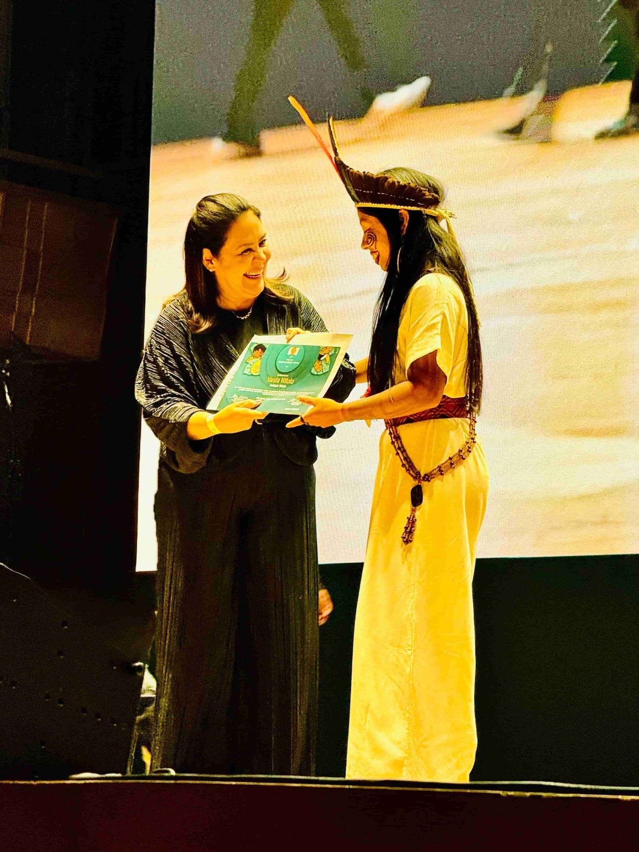 A superintendente de Cultura do SESI, Claudia Ramalho, participou da cerimônia e destacou a importância do prêmio. “O SESI é parceiro do Empreendedor Social há muitos anos e acredita na força de iniciativas inovadoras para as mudanças que já enfrentamos e ainda enfrentaremos”, afirmou a gestora após entregar certificado à finalista do prêmio Vanda Witoto, que, por meio do seu instituto, preserva a identidade indígena no contexto urbano em Manaus.